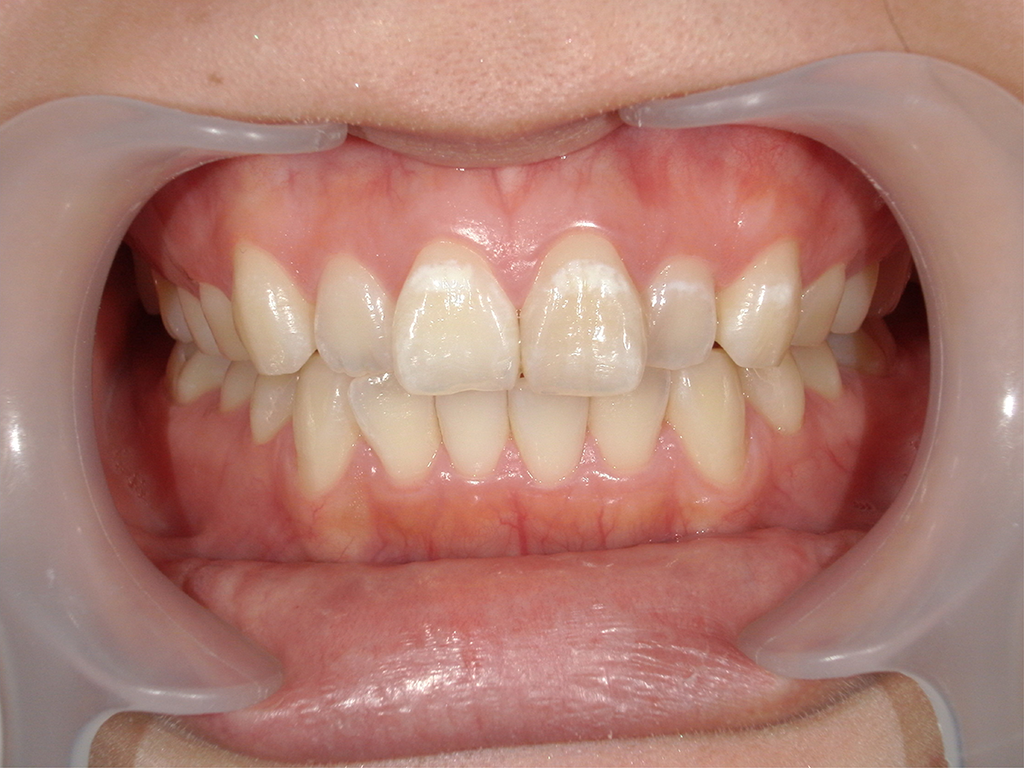 前歯2本だけ白い斑点を無くしたい。他の歯はまたそのうちやりたい。主訴