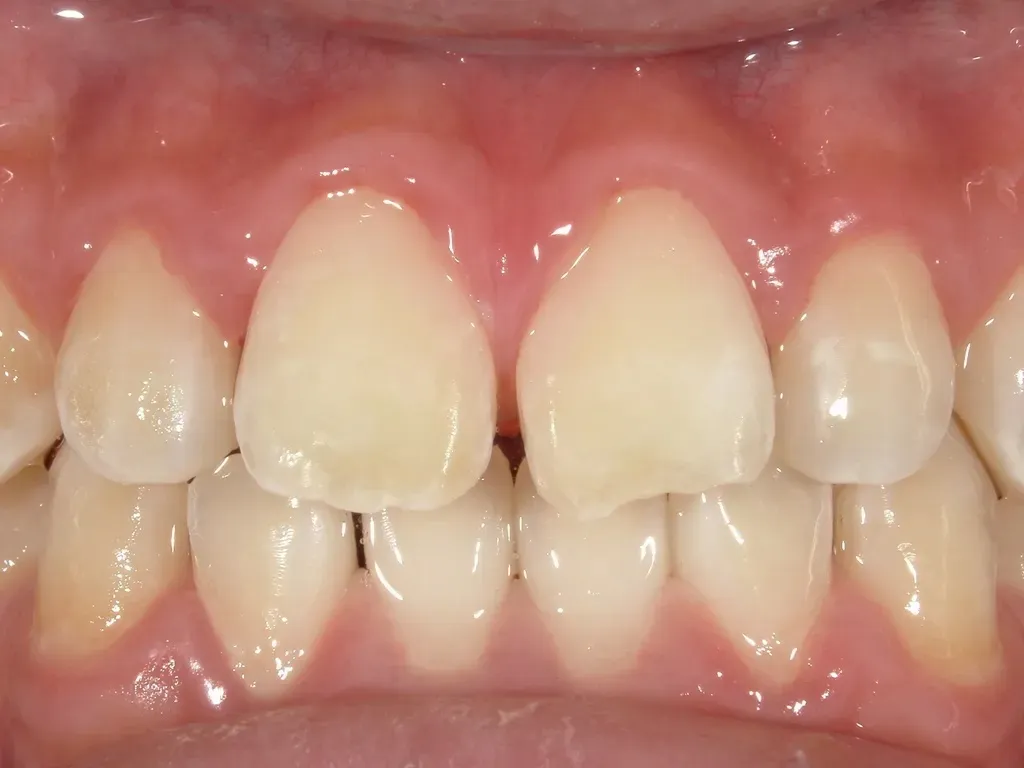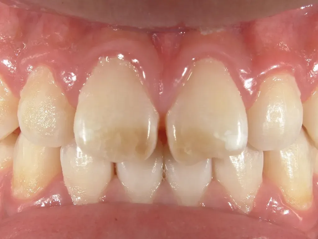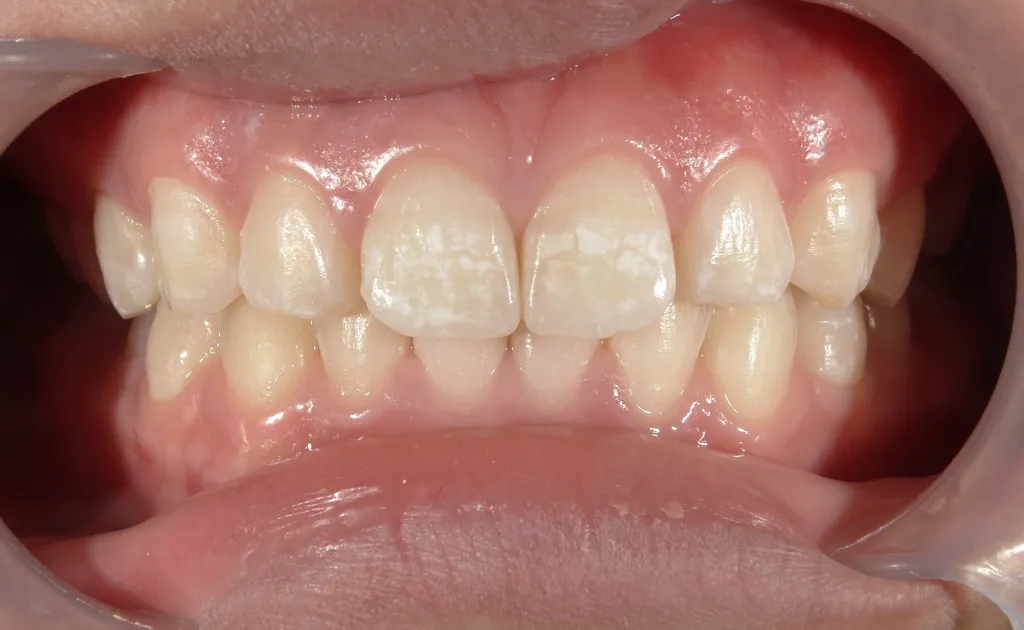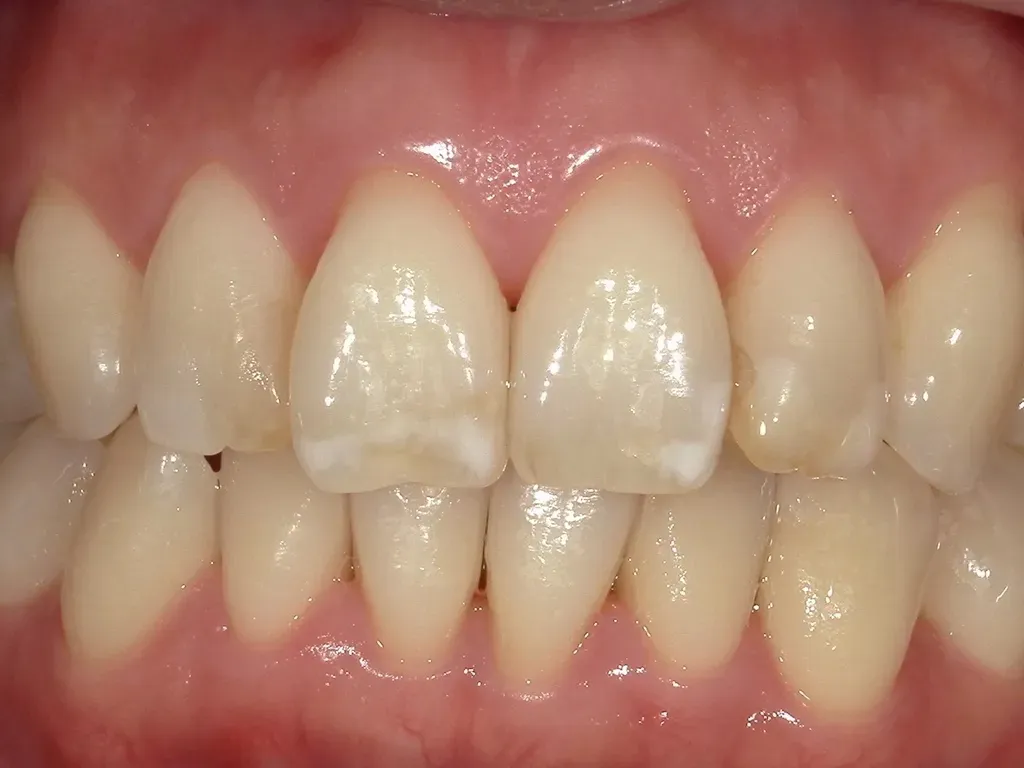 0〜8歳の歯の形成期にフッ素の過剰摂取により、エナメル質の形成が不均一になります。