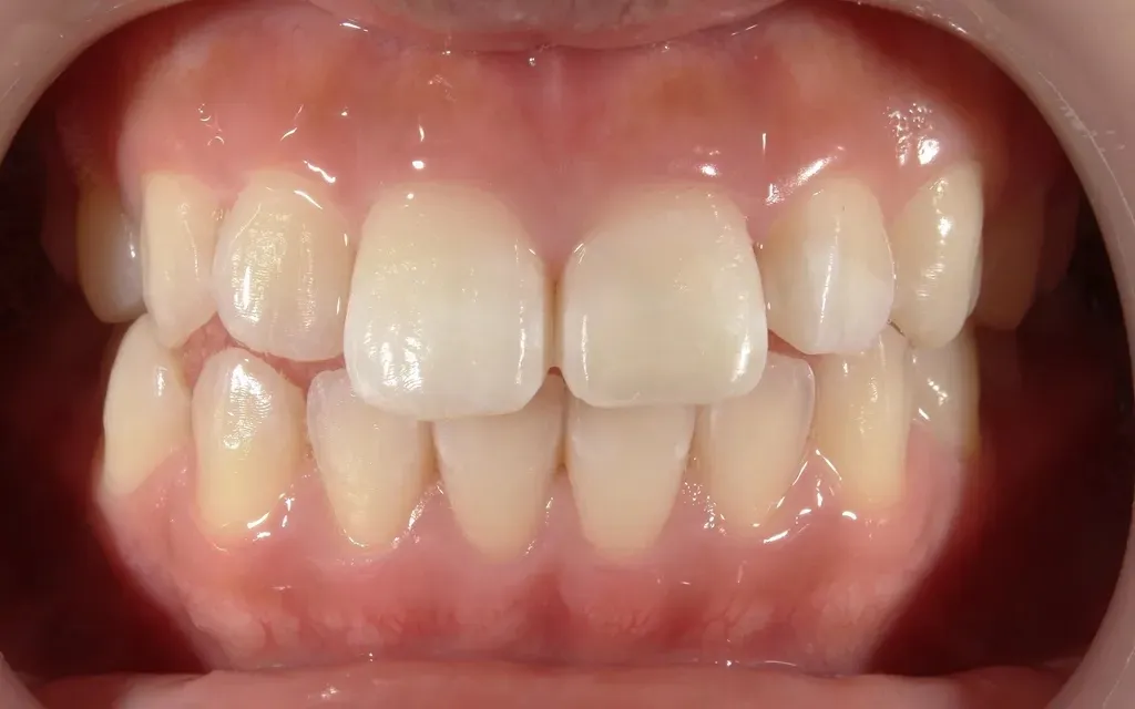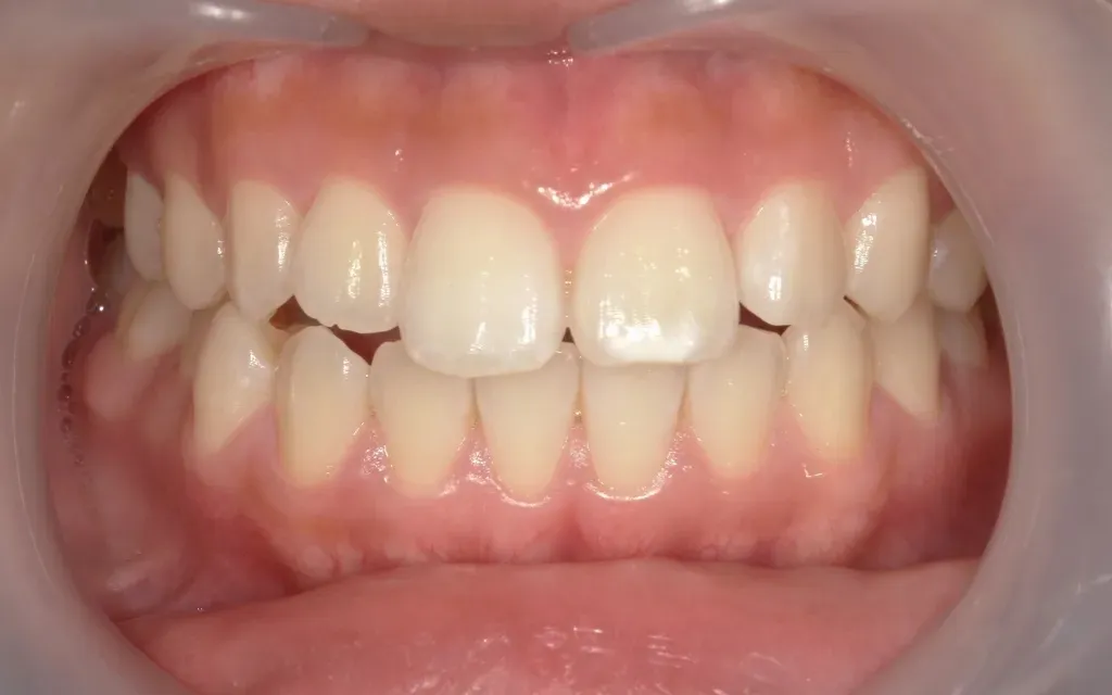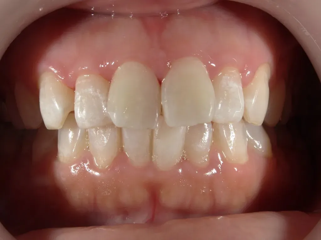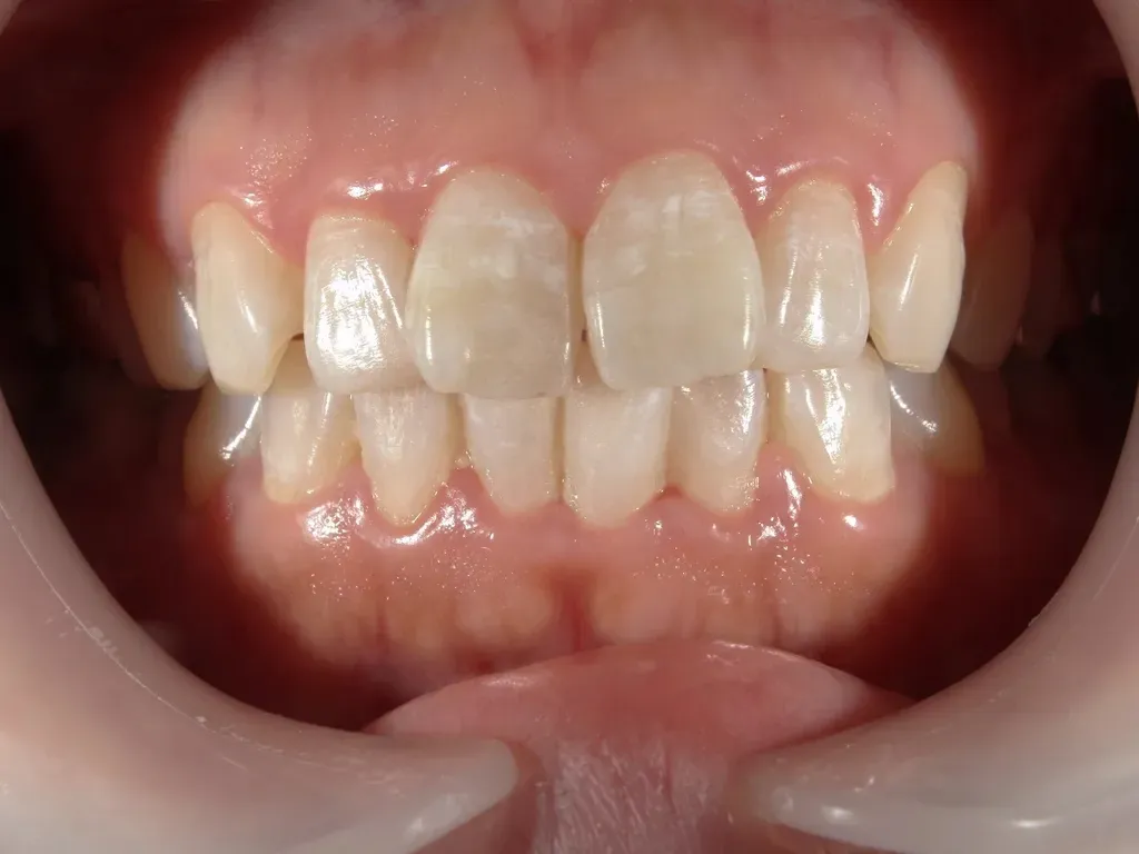 前歯に大きな白い部分があってコンプレックスに感じている。